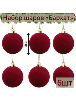 Набор больших елочных украшений "Бархат" 6 шт 8 см