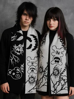 Шарф Дрейн вязаный с принтом Аниме двусторонний Y2K