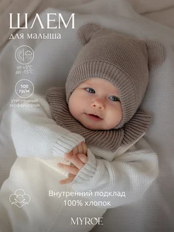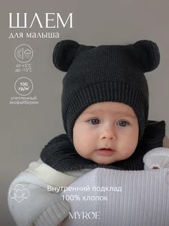 Шапка шлем для новорожденных с ушками мишки
