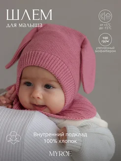 Шапка шлем для новорожденных с ушками зайца