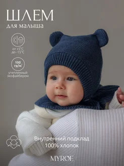 Комплект для новорожденного чепчик утепленный и снуд