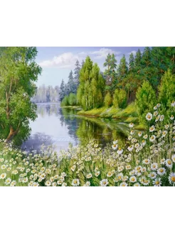 Набор для вышивания крестом Ромашки на берегу реки 40х50 см