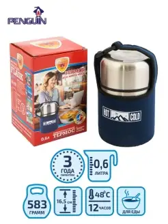 Термос 800 мл с широким горлом для еды, держит долго тепло