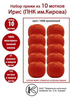 10 мотков Ирис нитки вязальные ПНК им.Кирова 1608 оранжевый