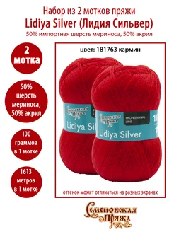 2 мотка пряжи Лидия Сильвер - 181763 кармин