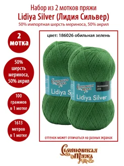 2 мотка пряжи Лидия Сильвер - 186026 обильная зелень