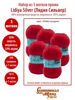 5 мотков пряжи Лидия Сильвер - 181663 гвоздика
