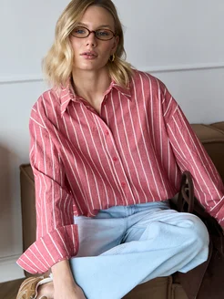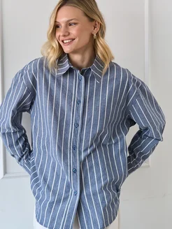 Пижама домашняя хлопковая со штанами и рубашкой в полоску