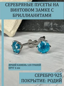 Серьги пусеты серебро 925 с одним камнем