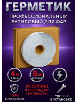 Герметик автомобильный для фар бутиловый 4м 8мм, для ремонта