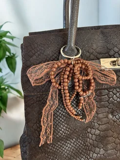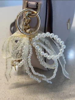 Брелок для ключей обвес кружевной бант на сумку жемчужный