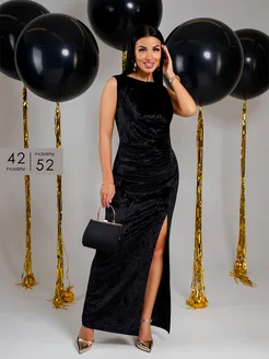 Платье бархатное вечернее с разрезом в пол на новый год