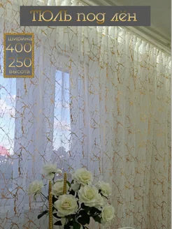 Тюль под лён золото с утяжелителем 400*250 см в гостиную