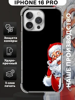 Чехол на Айфон 16 про с принтом новогодний дед мороз