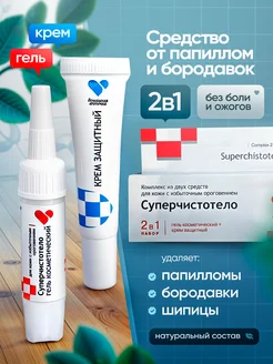 Гель Суперчистотело от папиллом и бородавок и защитный крем