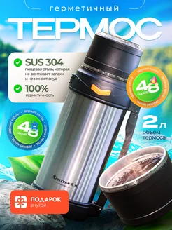 Термос для чая и кофе 2 л металлический походный с кружкой
