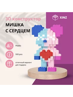 Конструктор 3D Мишка "Bearbrick Heart" 593 блоков