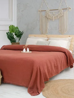 Плед на кровать 200х230 см 100% хлопок, терракотовый