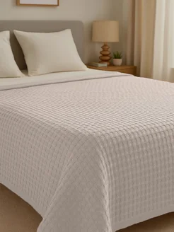 Плед на кровать 220х240 см 100% хлопок, бежевый