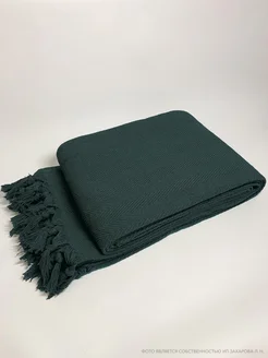 Плед на кровать 200х230 см 100% хлопок, темно-зеленый
