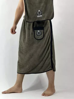 Банный комплект Килт и Полотенце из микрофибры, оливк-серый