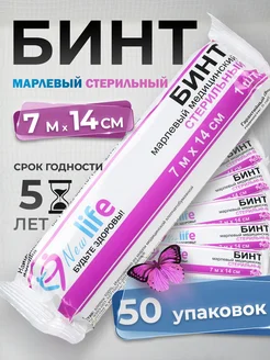 Бинт медицинский стерильный, 7м Х 14см, 50 шт