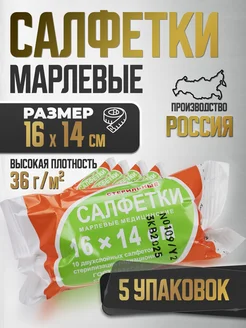 Салфетки марлевые стерильные 16х14 см, 5 уп