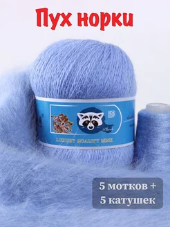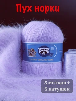 Пряжа Пух норки 5 мотков синяя этикетка, 844 лаванда