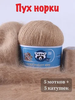 Пряжа Пух норки 5 мотков синяя этикетка, 835 бежевый