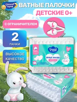 Ватные палочки с ограничителем для детей 2 упак. по 60 шт