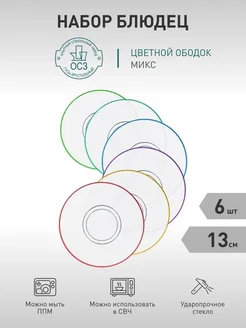 Блюдце Гламур цветной ободок 13,2см, 6-штук