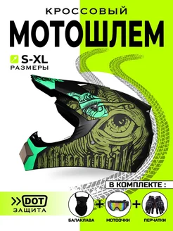 Шлем кроссовый с очками для мотоцикла питбайка эндуро