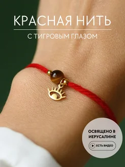 Красная нить с камнем натуральный тигровый глаз и подвеской