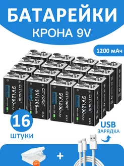 батарейки крона 9V(6F22) 1200mAh Li-ion с зарядкой USB, 16шт