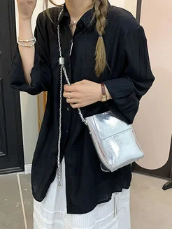 Сумка кросс-боди через плечо черная из экокожи на цепочке
