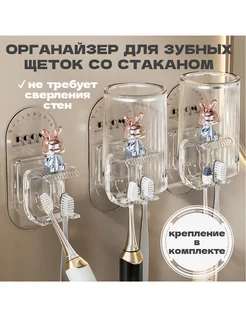 Органайзер для зубных щеток настенный с зайцем без сверления