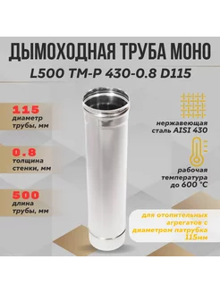Труба дымоходная L500 ТМ-Р 430-0.8 D 115 (ТиС)