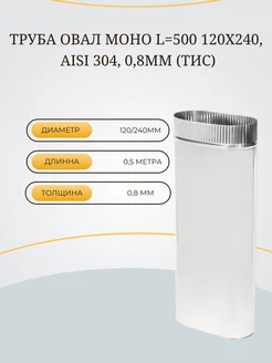 Труба овал моно L=500 120х240, AISI 304, 0,8мм (ТиС)