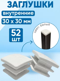 Заглушка 30х30 мм для профильной трубы. Белый цвет. 52 шт