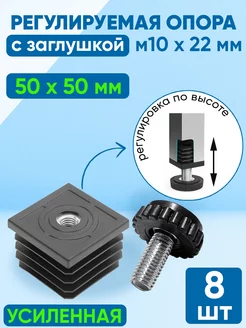 Заглушка 50х50 мм. + опора регулируемая М10х22 мм. (8 шт.)