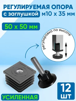 Заглушка 50х50 мм. + опора регулируемая М10х35 мм. (12 шт.)