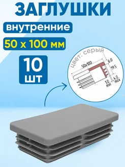Заглушка 50х100 мм для профильной трубы. Серый цвет. 10 шт