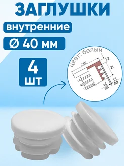 Заглушки D-40 мм для круглых труб. Белый цвет - 4 шт