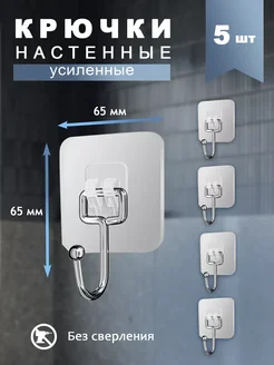 Крючки усиленные самоклеящиеся 5 шт до 15 кг, прозрачные