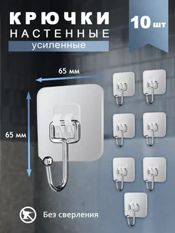 Крючки усиленные самоклеящиеся 10 шт до 15 кг прозрачные
