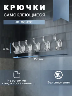 Крючки 6 штук пластиковые прозрачные, самоклеющиеся