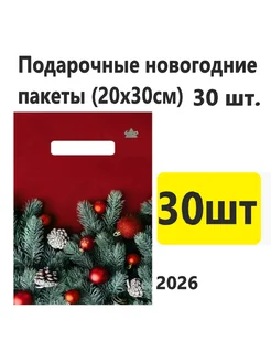 Подарочные новогодние пакеты (20х30см) 30 шт