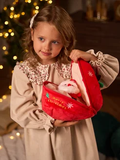 Рождественская мягкая игрушка яблоко с дедом морозом внутри