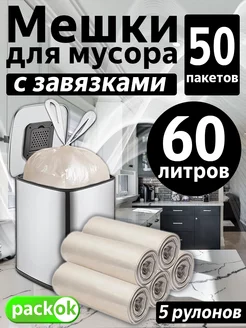 Мешки для мусора с завязками 60 литров, 5 рулонов