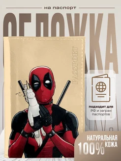 Обложка на паспорт кожаная с принтом дэдпул